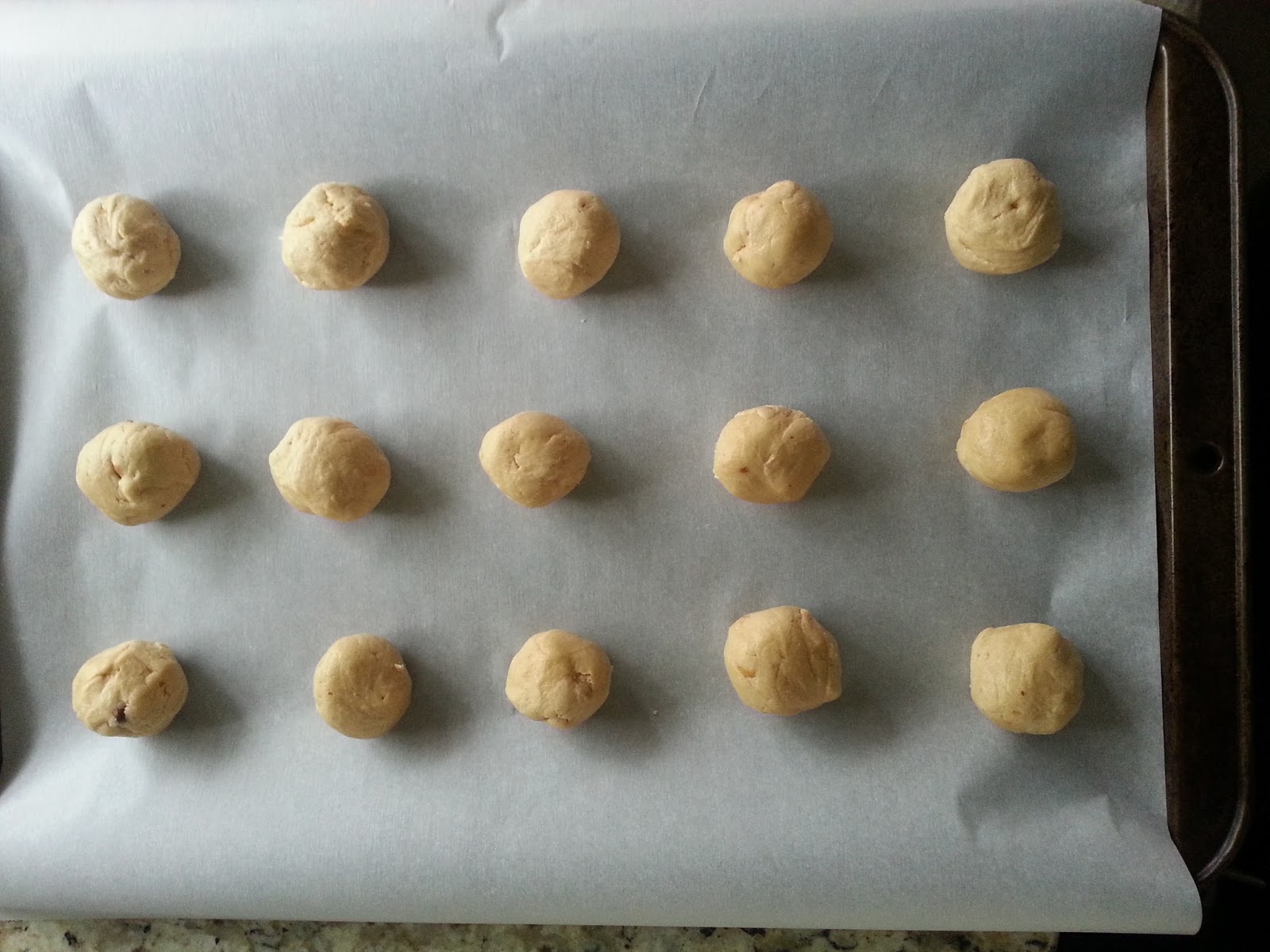 - Roll the batter into one-inch balls and place on prepared baking sheets